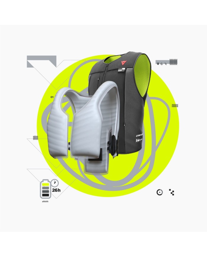 Die Smart Jacket kann über oder unter jeder Jacke und jedem Outfit getragen werden, benötigt keine Verbindung zum Motorrad, ist belüftet und leicht faltbar. Sie vereint alle Vorteile der letzten Generation von Dainese D-air® in einem einfachen Kleidungsstück, das überall getragen werden kann.