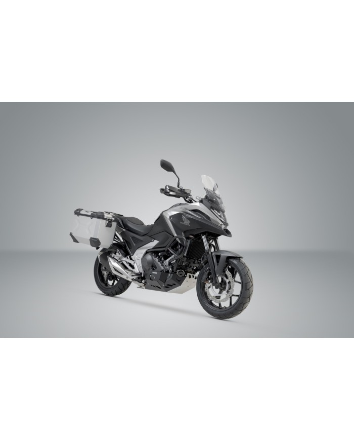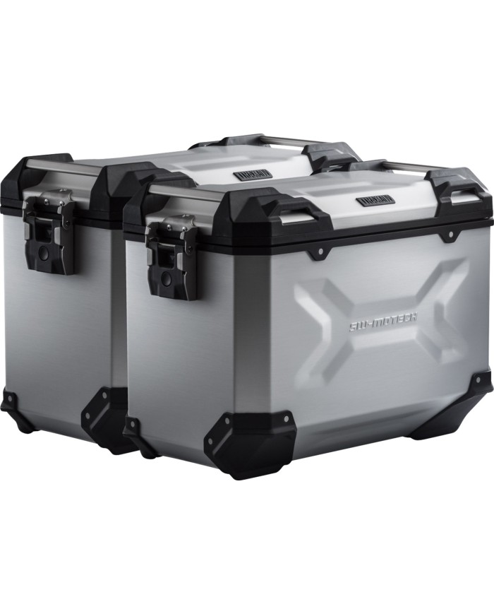 Die robusten TRAX ADV Alukoffer fühlen sich auf jeder Strecke zuhause: Designprägungen unterstützen die Stabilität des 1,5 Millimeter starken, geschweissten Aluminium-Wandmaterials. Ein komplett abnehmbarer Deckel mit Tragegriffen aus eloxiertem Aluminium und Schnellverschlüssen erleichtert Be- und Entladen der Motorradkoffer, die abgeschrägte Seitenkante gibt hohe Bodenfreiheit bei der Kurvenfahrt. Mit dieser Komplettlösung hast du alle benötigten Komponenten, um direkt mit TRAX auf grosse Reise zu gehen: Zwei wasserdichte TRAX ADV Seitenkoffer, zwei abnehmbare SW-MOTECH Seitenträger, Adapterkit, Schloss-Satz, Öffnungsbegrenzer und Diebstahlsicherung zum attraktiven Gesamtpreis. Die modellspezifischen Träger und die Grösse der Koffer sind perfekt auf Heckgeometrie und Auspuffanlage des Motorrades abgestimmt.