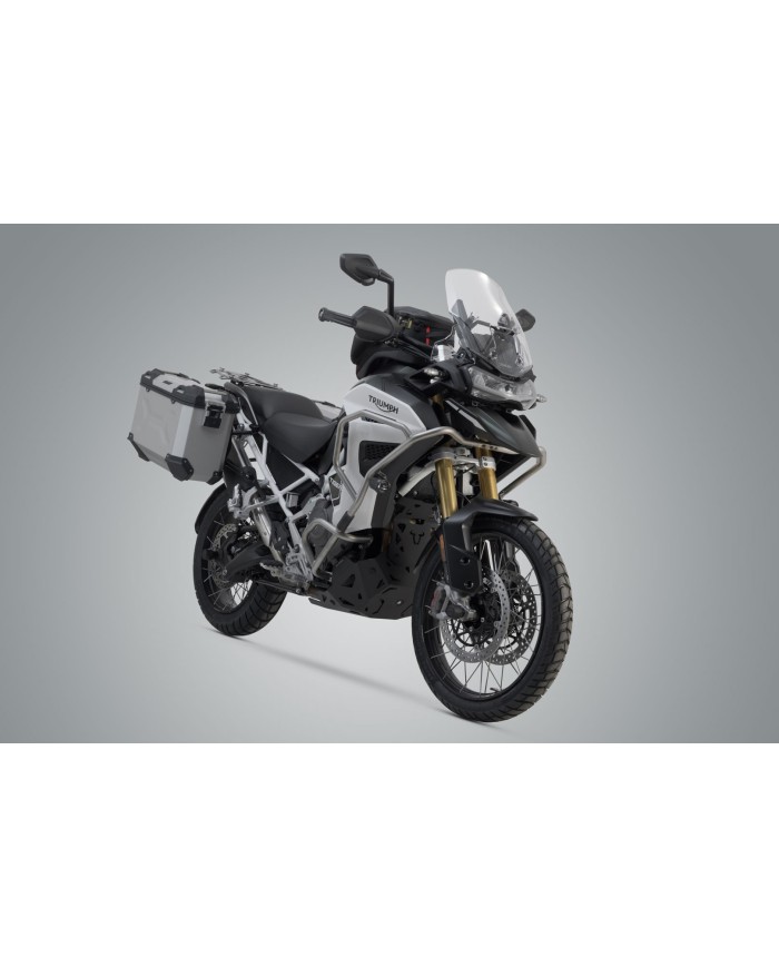 Die robusten TRAX ADV Alukoffer fühlen sich auf jeder Strecke zuhause: Designprägungen unterstützen die Stabilität des 1,5 Millimeter starken, geschweissten Aluminium-Wandmaterials. Ein komplett abnehmbarer Deckel mit Tragegriffen aus eloxiertem Aluminium und Schnellverschlüssen erleichtert Be- und Entladen der Motorradkoffer, die abgeschrägte Seitenkante gibt hohe Bodenfreiheit bei der Kurvenfahrt. Mit dieser Komplettlösung hast du alle benötigten Komponenten, um direkt mit TRAX auf grosse Reise zu gehen: Zwei wasserdichte TRAX ADV Seitenkoffer, zwei abnehmbare SW-MOTECH Seitenträger, Adapterkit, Schloss-Satz, Öffnungsbegrenzer und Diebstahlsicherung zum attraktiven Gesamtpreis. Die modellspezifischen Träger und die Grösse der Koffer sind perfekt auf Heckgeometrie und Auspuffanlage des Motorrades abgestimmt.