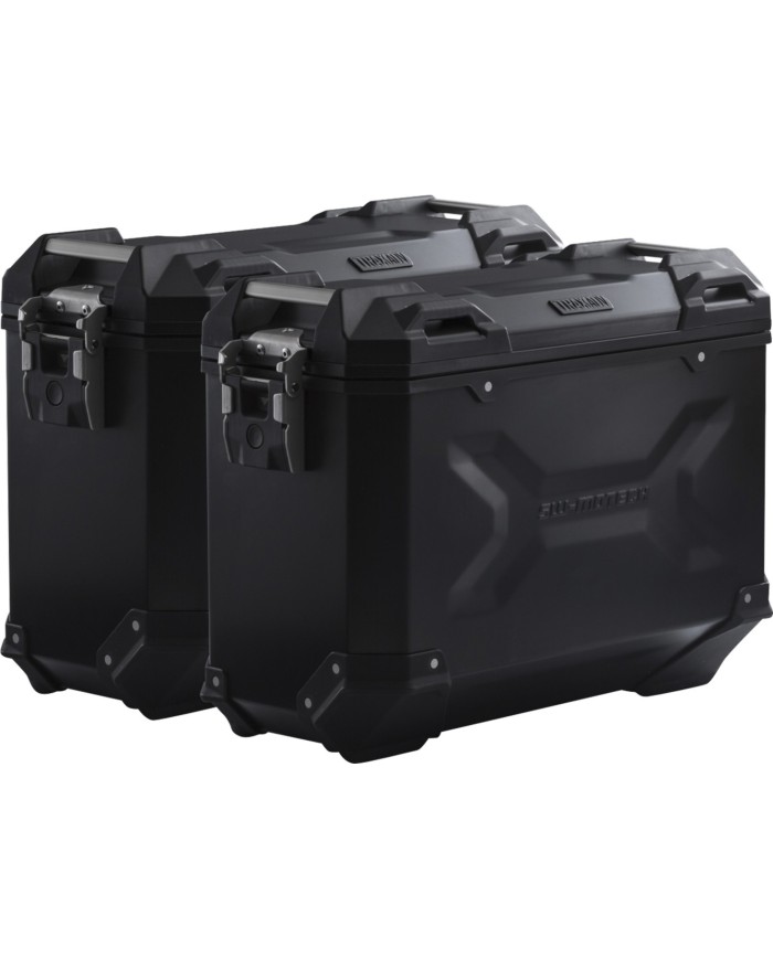 Die robusten TRAX ADV Alukoffer fühlen sich auf jeder Strecke zuhause: Designprägungen unterstützen die Stabilität des 1,5 Millimeter starken, geschweissten Aluminium-Wandmaterials. Ein komplett abnehmbarer Deckel mit Tragegriffen aus eloxiertem Aluminium und Schnellverschlüssen erleichtert Be- und Entladen der Motorradkoffer, die abgeschrägte Seitenkante gibt hohe Bodenfreiheit bei der Kurvenfahrt. Mit dieser Komplettlösung hast du alle benötigten Komponenten, um direkt mit TRAX auf große Reise zu gehen: Zwei wasserdichte TRAX ADV Seitenkoffer, zwei abnehmbareSW-MOTECH-Seitenträger, Adapterkit, Schloss-Satz, Öffnungsbegrenzer und Diebstahlsicherung zum attraktiven Gesamtpreis. Die modellspezifischen Träger und die Größe der Koffer sind perfekt auf die Heckgeometrie und die Auspuffanlage des Motorrads abgestimmt.