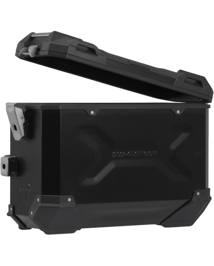 Die robusten TRAX ADV Alukoffer fühlen sich auf jeder Strecke zuhause: Designprägungen unterstützen die Stabilität des 1,5 Millimeter starken, geschweissten Aluminium-Wandmaterials. Ein komplett abnehmbarer Deckel mit Tragegriffen aus eloxiertem Aluminium und Schnellverschlüssen erleichtert Be- und Entladen der Motorradkoffer, die abgeschrägte Seitenkante gibt hohe Bodenfreiheit bei der Kurvenfahrt. Mit dieser Komplettlösung hast du alle benötigten Komponenten, um direkt mit TRAX auf grosse Reise zu gehen: Zwei wasserdichte TRAX ADV Seitenkoffer, zwei abnehmbare SW-MOTECH Seitenträger, Adapterkit, Schloss-Satz, Öffnungsbegrenzer und Diebstahlsicherung zum attraktiven Gesamtpreis. Die modellspezifischen Träger und die Grösse der Koffer sind perfekt auf Heckgeometrie und Auspuffanlage des Motorrades abgestimmt.