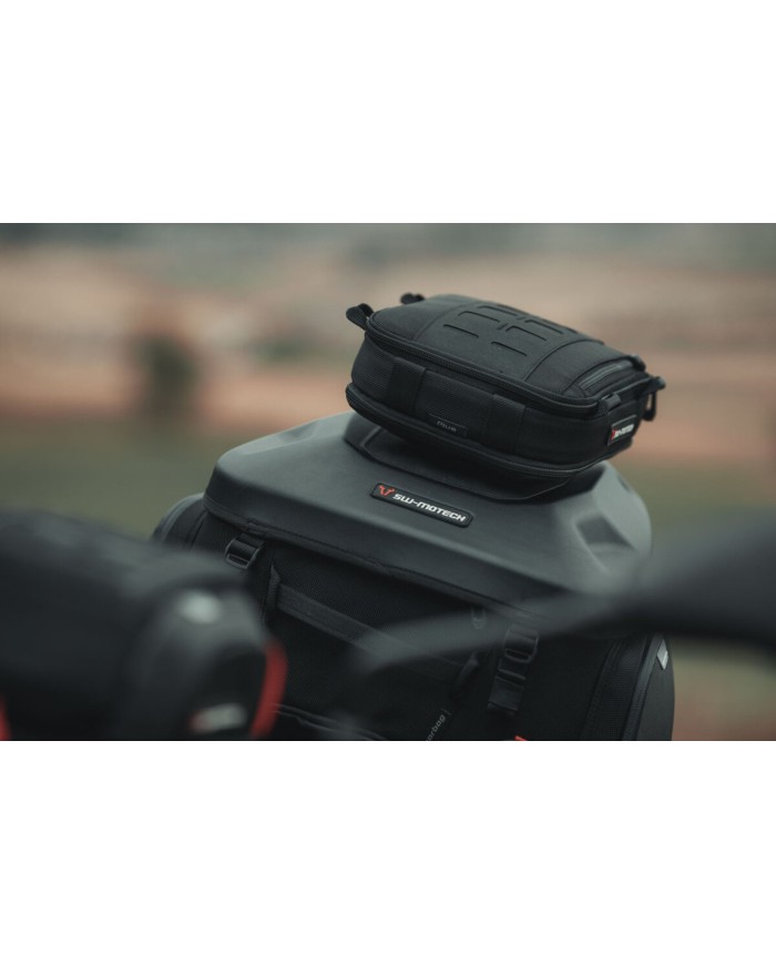 Die PRO Plus Zusatztasche verfügt über einen umlaufenden Reissverschluss und ein Aussenfach im Deckel. Das Volumen der Tasche kannst du durch die Reissverschlusserweiterung von drei auf sechs Liter erweitern. Auf der Innenseite des Deckels bietet ein Netzfach mit Reissverschluss Platz für Papiere und Schlüssel. Am Boden des Innenfachs können an den elastischen Kunststoffschlaufen Stifte, Werkzeug oder andere Kleinteile gesichert werden. Die Zusatztasche aus der PRO Serie wird aus unverwüstlichem 1680 D Ballistic Nylon gefertigt, das ursprünglich für militärische Zwecke entwickelt wurde. Zudem überzeugt sie mit hochwertiger Verarbeitung und durchdachten Features: Ein MOLLE-Aufsatz auf der Oberseite ermöglicht die Befestigung von weiteren Zusatztaschen mit MOLLE Schlaufen oder über den T-Lock-Halter von SW-MOTECH. Die MOLLE-Schlaufen an der Unterseite der PRO Plus machen die Tasche zu einer vielseitig einsetzbaren Begleiterin. Sie kann auf allen Taschen der PRO Serie am MOLLE-Aufsatz befestigt werden, sowohl an PRO Hecktaschen als auch an den PRO Tankrucksäcken. Damit ist sie die ideale Ergänzung für dich, wenn du zusätzlichen Stauraum für kleinteilige Reiseutensilien brauchst, die schnell zur Hand sein sollen.
