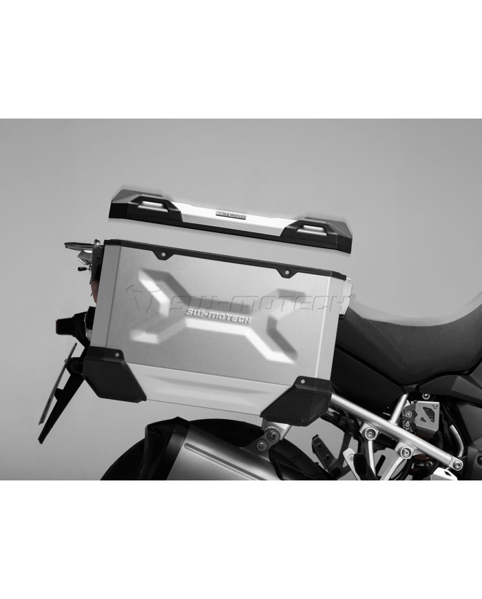 - Auch als TRAX ADV Alukoffer-System mit 2 Seitenkoffern, modellspezifischen Seitenträgern, Adaptern und Schloss-Satz erhältlich.