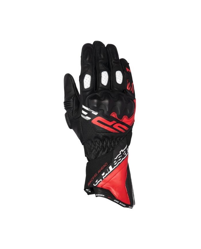 Die SP-3 Gloves kombinieren Rennsport-Technologie mit vollem Ziegenleder, ergonomischer Passform und erstklassigem Schutz für maximalen Komfort auf der Strasse.Die Motorradhandschuhe von Alpinestars bringen Rennsport-Feeling auf die Strasse! Das langlebige Ziegenleder sorgt für Top-Schutz und Abriebfestigkeit, während flexible Akkordeon-Panels an Daumen und Fingern für beste Beweglichkeit sorgen. Dank des langen Schafts mit Doppelverschluss sitzen die Handschuhe sicher und bieten optimalen Halt. Touchscreen-Kompatibilität, verstärkte Polsterungen und eine ergonomische Passform machen sie zum perfekten Begleiter für anspruchsvolle Motorradfahrer.EigenschaftenErgonomische, vorgeformte Passform für hohen TragekomfortLanger Schaft mit Doppelverschluss (Handgelenk + Manschette) für sicheren SitzGrip-Einsätze an Daumen und Handfläche für besseren HaltTouchscreen-kompatibles E-Touch-Tip am ZeigefingerPraktische Anziehhilfe für einfaches An- und AusziehenAussenmaterialHochwertiges, vollnarbiges Ziegenleder für Abriebfestigkeit und LanglebigkeitFlexible Akkordeon-Panels an Daumen und Fingerbrücke für bessere BeweglichkeitInnenmaterial/MembraneNahtfreies Innenfutter an den Fingern für mehr KomfortWeiche Polsterungen an Handfläche und Fingern für zusätzlichen SchutzProtektorenCE-zertifizierter Knöchelschutz (Level 1) mit PU-ÜberzugVerstärkte Polsterungen an Fingern, Handfläche, Manschette und DaumenSchaumstoff-Stossdämpfer an der HandaussenkanteFingerbrücke für mehr Schutz der PhalangenGummierte Verstärkungen für besseren Grip und zusätzlichen Schutz