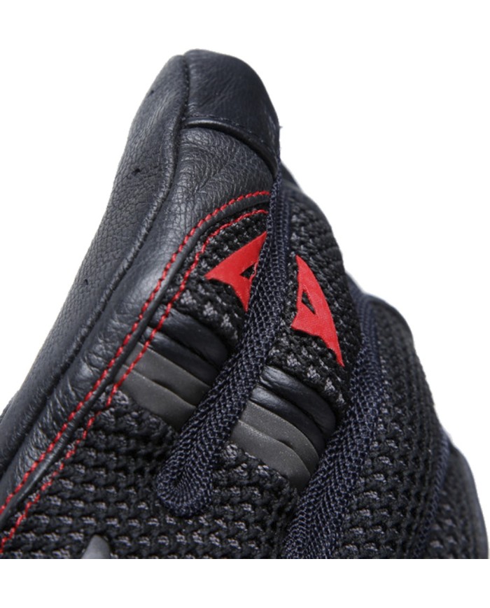 Adventure-Sommerhandschuhe aus belüftetem Stretchmaterial mit Handfläche aus Ziegenleder und Ergo-Tek-Protektoren an den Knöcheln. Magic Connection-Technologie zur Magnetbefestigung an vorgerüsteten Dainese Jacken.