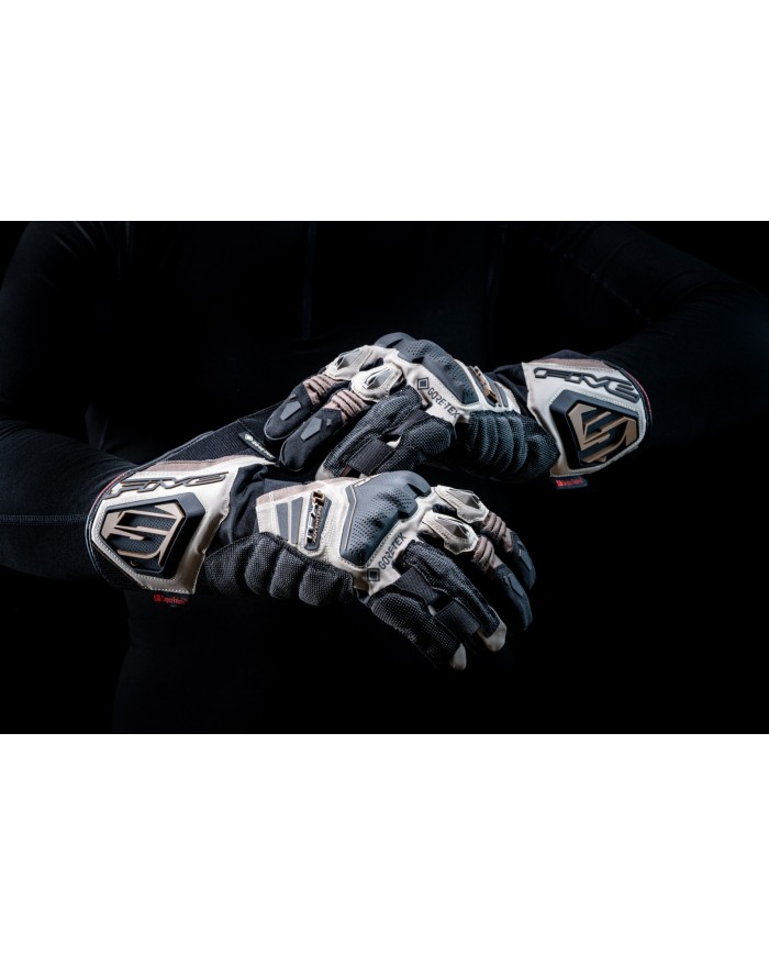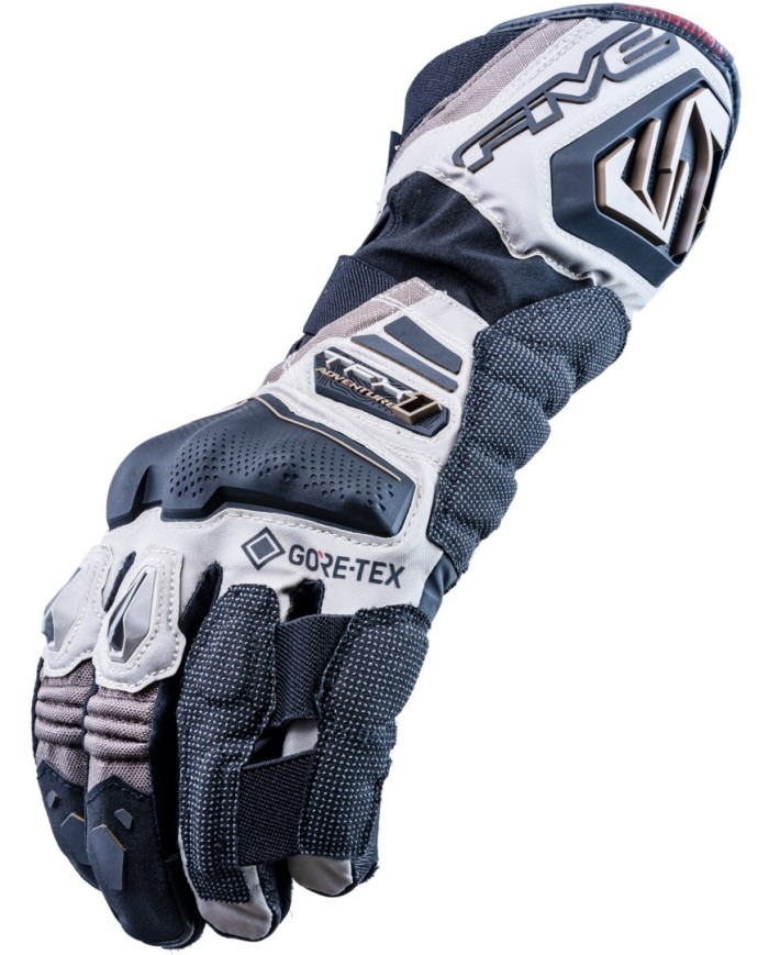 Wenn Sie sich auf Rädern, die darauf ausgelegt sind, Tausende Meilen zurückzulegen, auf unbekanntes Terrain begeben, ist es nur richtig, das Beste an Komfort, Sicherheit und Strapazierfähigkeit zu erwarten. Und das gibt Ihnen der FX1, ein brandneues Modell im Trail Adventure-Programm von FIVE und unser Premium-Angebot in dieser Kategorie. Er besteht aus Materialien und einem Design, die ihn zum ultimativen Bestandteil für die Grand Touring-Ausstattung machen. Die digitalisierte Ausführung der Handflächen in vollnarbigem Ziegenleder sowie die Oberseite aus einer Kombination von wasserabweisendem Stretchmaterial und RipStop verleihen ihm ein Maß an Komfort und Robustheit, das für lange Tage auf der Straße unentbehrlich ist. Die außergewöhnliche Passform, das Markenzeichen von FIVE, entfaltet bei diesem Modell ihre volle Wirkung. Seine atmungsaktive und wetterfeste GORE-TEX-Membran, die mit der Handflächeneinlage und dem Lederschutz fest verbunden ist, bietet Ihnen perfekten Schutz vor schlechtem Wetter (auch bei Schlagregen) und gleichzeitig maximales Fingerspitzengefühl beim Lenken. Der TFX1 hat in Hinblick auf Schutzelemente alles was Sie brauchen, ohne Sie beim Fahren in Ihrer Beweglichkeit einzuschränken, einschließlich einer großen SuperFabric®-Einlage in der Handfläche, die bis in die äußeren Finger hineinreicht und Sie bei einem Sturz schützt, ohne den korrekten Grip zu beeinträchtigen oder aber seinen neuen FIVErgo ProTech Schutz in halbweicher TPR-Ausführung. Sein duales Verschlusssystem, bestehend aus einem V-förmigen Riemen und Klettverschluss, ermöglicht eine extrem präzise Anpassung über oder unter dem Jackenärmel. Dank den Clear Vision Pad-Visierreinigungs- und Touch-Screen-Systemen, haben Sie mit dem TFX1 immer Kontrolle über Ihre Navigationsausrüstung. Seine technischen Eigenschaften und das hochmoderne Design werden auch die zufriedenstellen, die sich nicht vorstellen können, ohne die richtige Ausrüstung auf einen langen Roadtrip zu gehen ... und die nur das Allerbeste wollen!