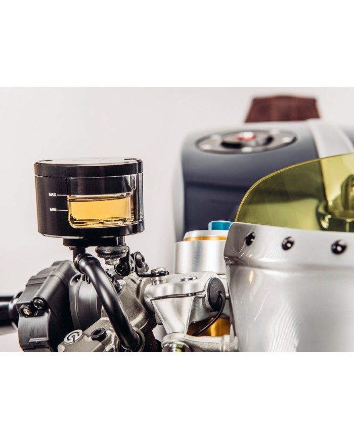 Dieser Bremsflüssigkeitsbehälter von Rizoma setzt neue Massstäbe. Er ist zur Gänze aus dem Vollen bearbeitet und bietet durch besondere Oberflächenbehandlung neben einem breit gefächerten Farbspektrum ebenfalls hervorragende Qualität und Lebensdauer.