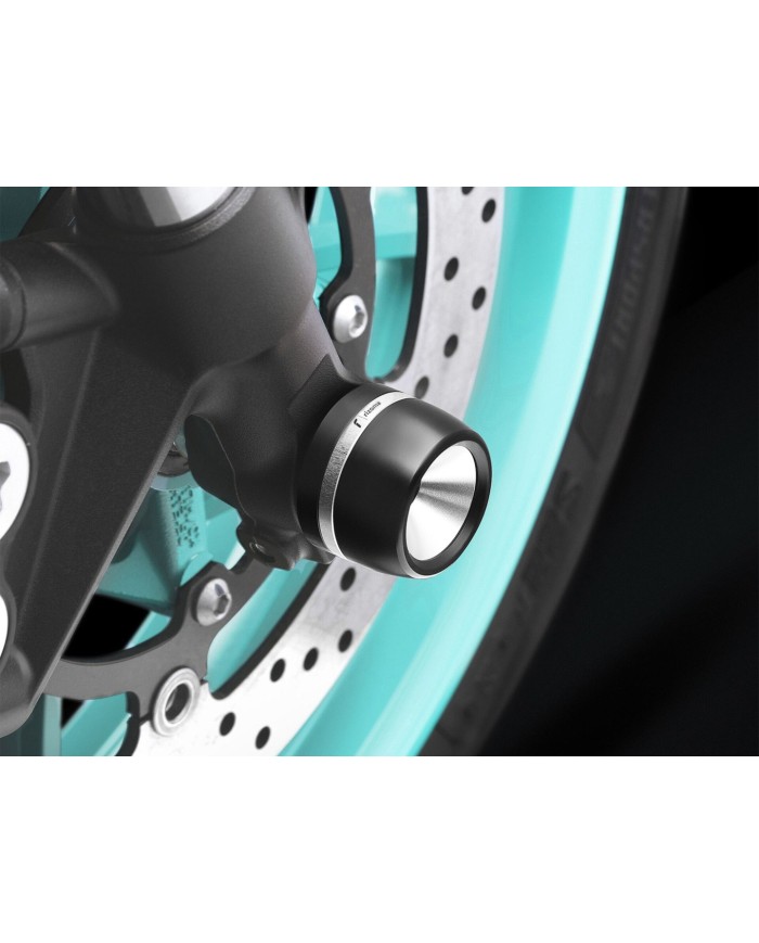 Gabel und Schwinge zählen zu den Teilen, die bei einem Sturz als erstes mit dem Boden in Kontakt kommen. Die Rizoma-Radachsenschutzvorrichtungen sind darauf ausgelegt, im Fall eines Sturzes die Bodenreibung zu verringern und eventuelle Stösse abzudämpfen. Aus dem Vollen gearbeitetes Trägerelement aus Aluminium und austauschbarer Slider aus Delrin®. Ein optimales Zusammenspiel aus Ästhetik, Leichtigkeit und Funktionalität.