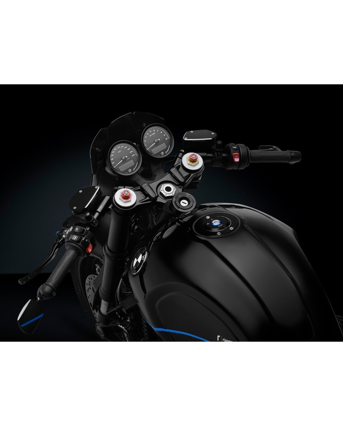 Die Klemmschellen der im Fall einer Beschädigung austauschbaren Lenkerstummel sind innen gewichtsoptimiert. Mit TÜV-Zertifizierung.