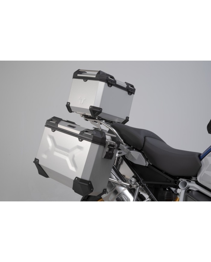 Dieses Set ist das Rund-um-Sorglos-Paket für jede Tour. Die wasser- und staubdichten TRAX ADV Premium-Alukoffer, zwei Seitenkoffer und ein Topcase, bieten deinem Gepäck besten Schutz. Die modellspezifische Entwicklung des abnehmbaren PRO Seitenträgers und des ADVENTURE-RACK Gepäckträgers garantieren beste Passform und den sicheren Halt der Alukoffer.