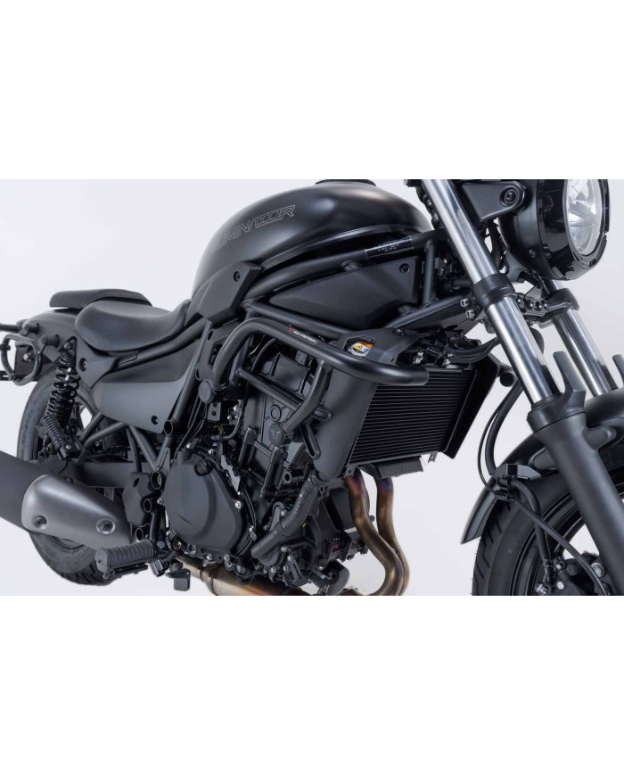 SW-MOTECH stellt diesen fahrzeugspezifischen Sturzbügel für die Kawasaki Eliminator 500 aus schwarz pulverbeschichtetem Stahl her.