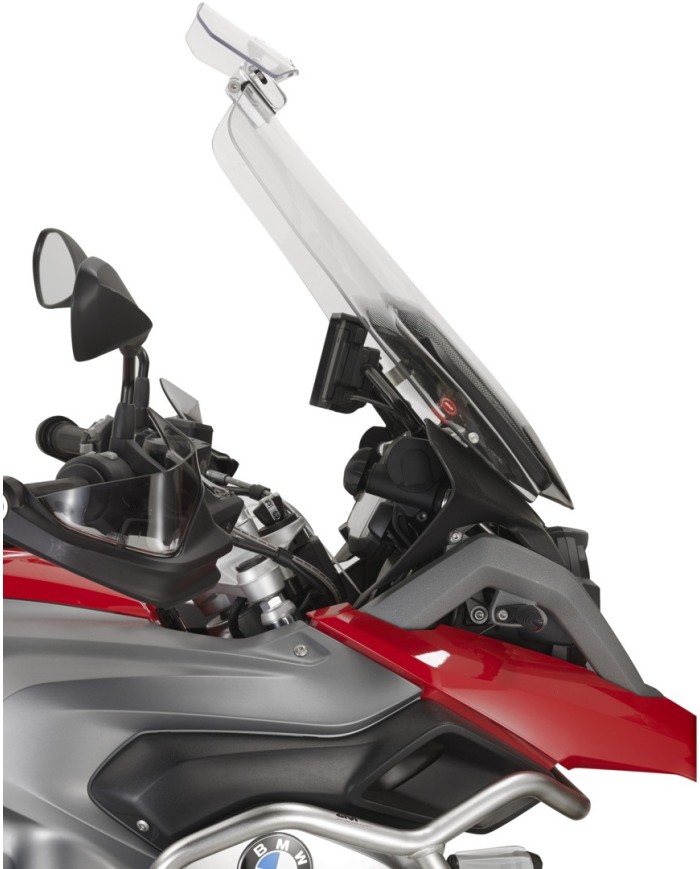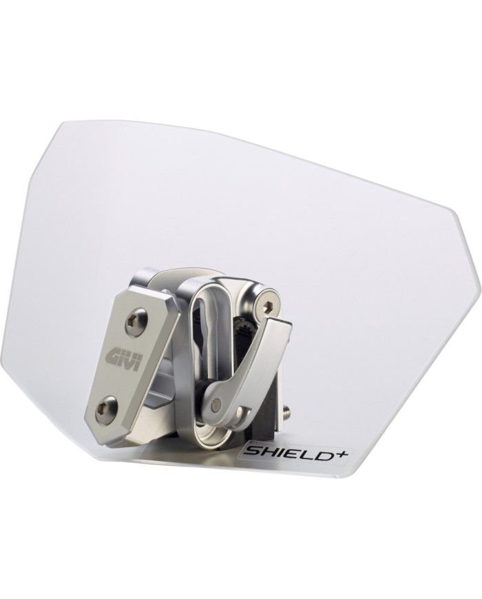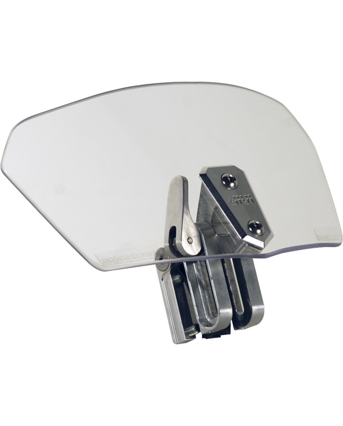 Universal Spoiler transparent oder getönt für Windschilder; Das Befestigungssystem aus Alu erlaubt eine stufenlose Regulierung in der Höhe und Neigung des Spoilers.