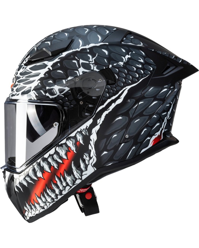 Der DRIFT EVO II verfügt über ein transparentes, kratzfestes Visier und eine im Lieferumfang enthaltene, verstellbare Pinlock Max Vision 70 Antibeschlag-Linse. Der Helm ist mit einem einfach zu bedienenden Schnellverschluss-Visiermechanismus ausgestattet, der eine automatische Anpassung des Visiers ermöglicht und einen engen Kontakt zwischen Visier und Dichtung garantiert. Um ein plötzliches Öffnen des Visiers während der Fahrt zu verhindern, verfügt der DRIFT EVO II über ein zentrales Visierverriegelungssystem und eine Öffnungstaste, die es erlaubt, das Visier in einer minimalen geöffneten Position zu stoppen, um Beschlagen zu vermeiden.