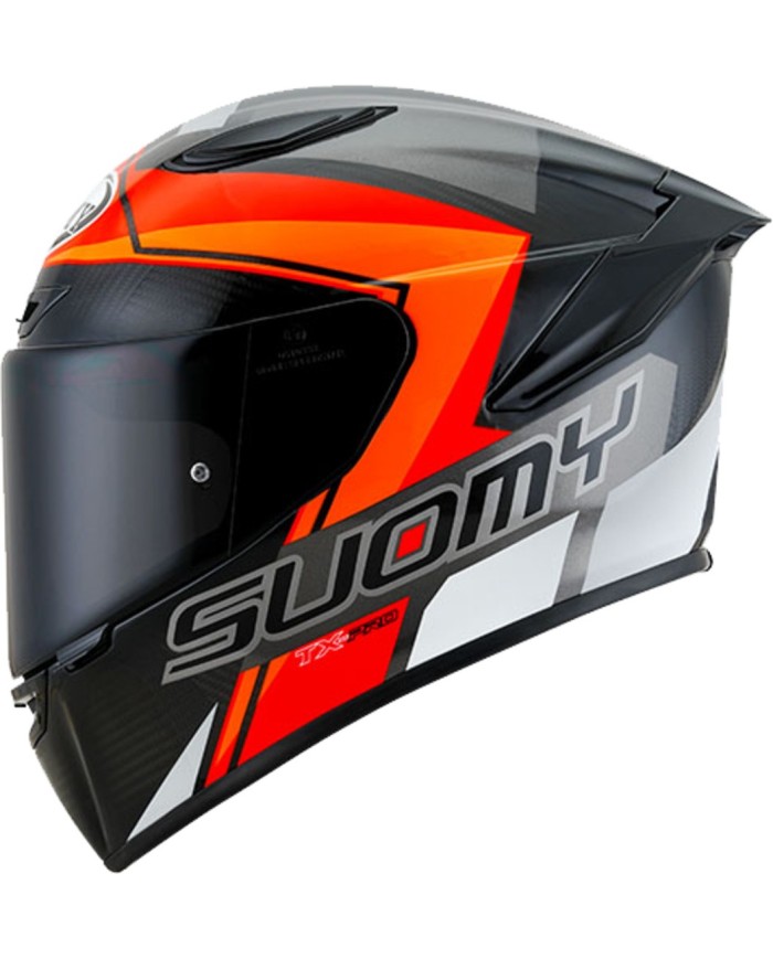 Der TX-PRO ist der brandneue, hochmoderne Integralhelm von SUOMY, abgeleitet aus der Rennsportwelt und gefertigt aus TRICARBOCO (Carbon-Aramidfasern-Glasfasern) mit edlem Carbon-In-Sight-Finish. Die faszinierenden und optimierten Formen der Schale sind das Ergebnis tiefgehender Ingenieursarbeiten und aerodynamischer Studien, die eine aussergewöhnliche Leichtigkeit und unvergleichliches dynamisches Verhalten sowohl auf der Strasse als auch auf der Rennstrecke garantieren. Das Visier in optischer Klasse 1 sowie die 90° vertikale und 210° periphere Sicht sind, wie immer, die begehrten Markenzeichen von Suomy.