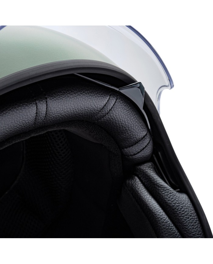 Schmaler Cover-Mechanismus, der einfach mit einem Inbusschlüssel (nicht im Lieferumfang enthalten) zu demontieren istVier Anwendungsmöglichkeiten: 1. Doppel-Visier. 2. langes Visier. 3. Sonnenschutz-Visier. 4. ohne Visier.Optimale Balance dank des geringen Gewichts des HPFC-Fiberglas und einer sorgfältigen Untersuchung bezüglich der Positionierung des Kopfes im Helm-Inneren.Innen ausgeschlagen mit atmungsaktiver und anti-allergischer Baumwolle mit Aero 3D-Netzeinsatz und Details aus ÖkolederAbnehm-und waschbare Wangenpolster Viel Platz im Ohren-BereichMetallring zur Befestigung am Fahrzeug