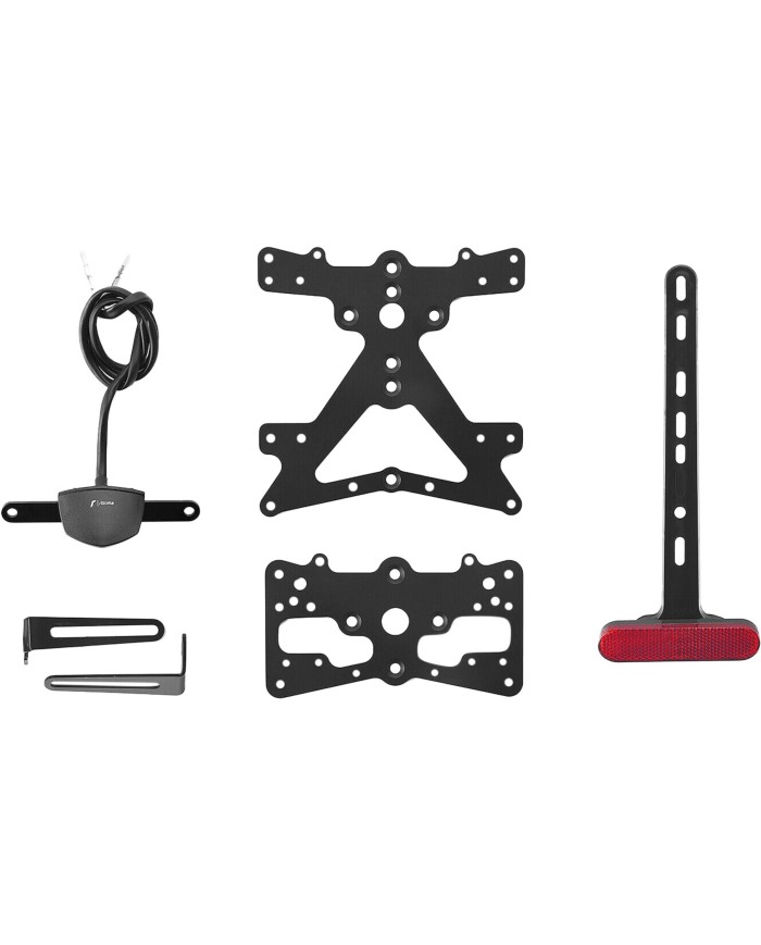 Der aus Aluminium gefertigte Kennzeichenträger Fox ist speziell für das jeweilige Motorradmodell konzipiert. Dadurch passt er sich nicht nur perfekt an die Liniengebung des Motorrads an, sondern punktet zudem durch eine einfache und schnelle Montage. Jedes Kit enthält alle benötigten Montageteile, wobei keine Veränderungen an OEM-Teilen vorgenommen werden müssen. Maximale Funktionalität auf kleinstem Raum und Einhaltung der Zulassungsstandards. Die Fox-Kits enthalten eine SMD-LED-Kennzeichenbeleuchtung, einen Reflektor und Adapter für Rizoma-Blinker, sind verstellbar und mit einem Feststeller zur Fixierung der korrekten Neigung ausgestattet.