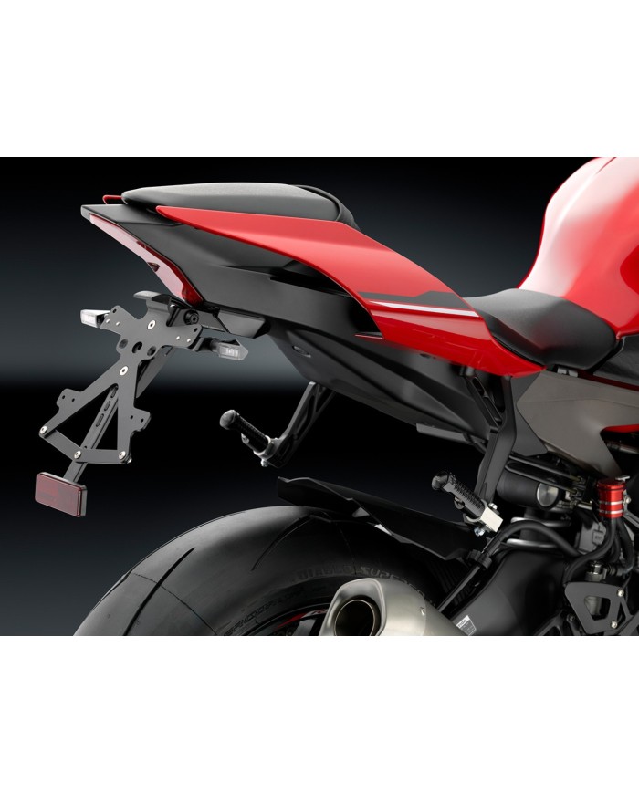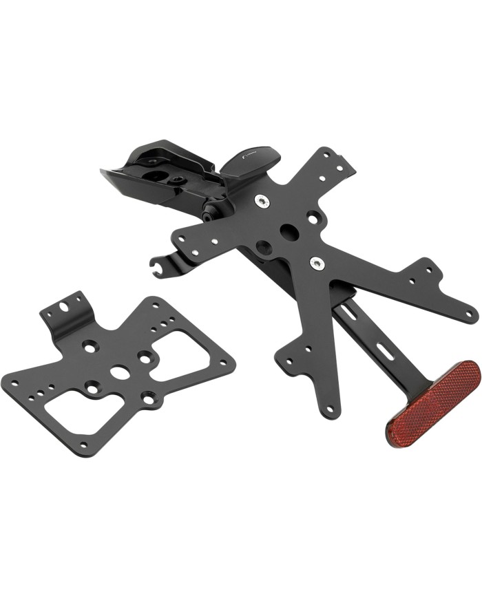 Der aus Aluminium gefertigte Kennzeichenträger Fox ist speziell für das jeweilige Motorradmodell konzipiert. Dadurch passt er sich nicht nur perfekt an die Liniengebung des Motorrads an, sondern punktet zudem durch eine einfache und schnelle Montage. Jedes Kit enthält alle benötigten Montageteile, wobei keine Veränderungen an OEM-Teilen vorgenommen werden müssen. Maximale Funktionalität auf kleinstem Raum und Einhaltung der Zulassungsstandards. Die Fox-Kits enthalten eine SMD-LED-Kennzeichenbeleuchtung, einen Reflektor und Adapter für Rizoma-Blinker, sind verstellbar und mit einem Feststeller zur Fixierung der korrekten Neigung ausgestattet.