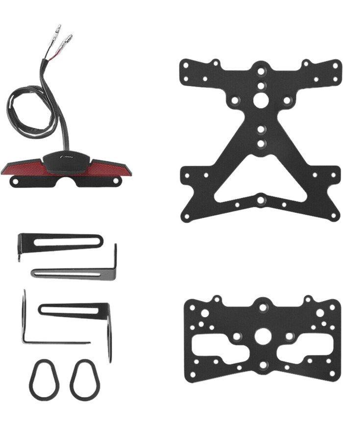 Der aus Aluminium gefertigte Kennzeichenträger Fox ist speziell für das jeweilige Motorradmodell konzipiert. Dadurch passt er sich nicht nur perfekt an die Liniengebung des Motorrads an, sondern punktet zudem durch eine einfache und schnelle Montage. Jedes Kit enthält alle benötigten Montageteile, wobei keine Veränderungen an OEM-Teilen vorgenommen werden müssen. Maximale Funktionalität auf kleinstem Raum und Einhaltung der Zulassungsstandards. Die Fox-Kits enthalten eine SMD-LED-Kennzeichenbeleuchtung, einen Reflektor und Adapter für Rizoma-Blinker, sind verstellbar und mit einem Feststeller zur Fixierung der korrekten Neigung ausgestattet.