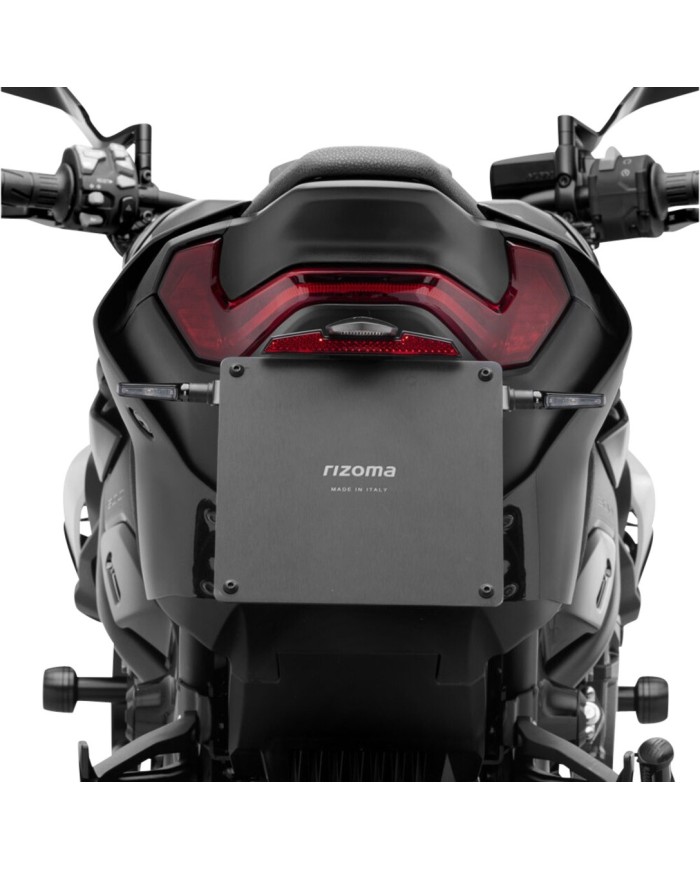 Der aus Aluminium gefertigte Kennzeichenträger Fox ist speziell für das jeweilige Motorradmodell konzipiert. Dadurch passt er sich nicht nur perfekt an die Liniengebung des Motorrads an, sondern punktet zudem durch eine einfache und schnelle Montage. Jedes Kit enthält alle benötigten Montageteile, wobei keine Veränderungen an OEM-Teilen vorgenommen werden müssen. Maximale Funktionalität auf kleinstem Raum und Einhaltung der Zulassungsstandards. Die Fox-Kits enthalten eine SMD-LED-Kennzeichenbeleuchtung, einen Reflektor und Adapter für Rizoma-Blinker, sind verstellbar und mit einem Feststeller zur Fixierung der korrekten Neigung ausgestattet.