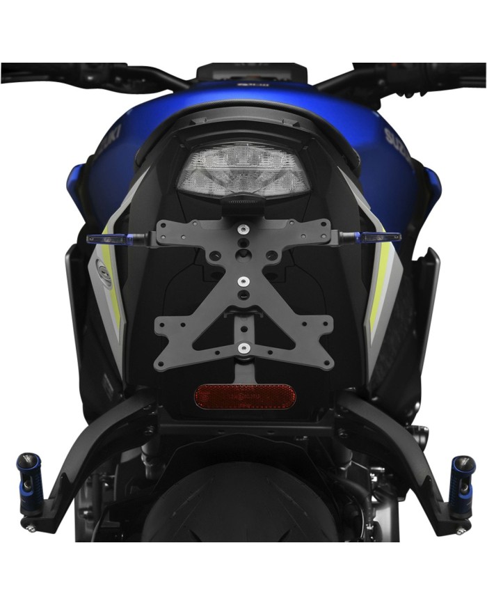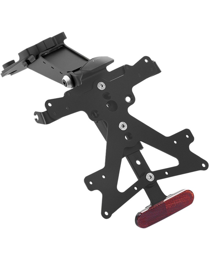 Der aus Aluminium gefertigte Kennzeichenträger Fox ist speziell für das jeweilige Motorradmodell konzipiert. Dadurch passt er sich nicht nur perfekt an die Liniengebung des Motorrads an, sondern punktet zudem durch eine einfache und schnelle Montage. Jedes Kit enthält alle benötigten Montageteile, wobei keine Veränderungen an OEM-Teilen vorgenommen werden müssen. Maximale Funktionalität auf kleinstem Raum und Einhaltung der Zulassungsstandards. Die Fox-Kits enthalten eine SMD-LED-Kennzeichenbeleuchtung, einen Reflektor und Adapter für Rizoma-Blinker, sind verstellbar und mit einem Feststeller zur Fixierung der korrekten Neigung ausgestattet.