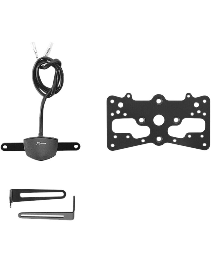 Der aus Aluminium gefertigte Kennzeichenträger Fox ist speziell für das jeweilige Motorradmodell konzipiert. Dadurch passt er sich nicht nur perfekt an die Liniengebung des Motorrads an, sondern punktet zudem durch eine einfache und schnelle Montage. Jedes Kit enthält alle benötigten Montageteile, wobei keine Veränderungen an OEM-Teilen vorgenommen werden müssen. Maximale Funktionalität auf kleinstem Raum und Einhaltung der Zulassungsstandards. Die Fox-Kits enthalten eine SMD-LED-Kennzeichenbeleuchtung, einen Reflektor und Adapter für Rizoma-Blinker, sind verstellbar und mit einem Feststeller zur Fixierung der korrekten Neigung ausgestattet.