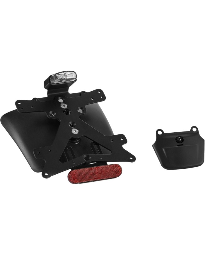 Im Lieferumfang ist alles, was Sie benötigen, um Ihren Roller zu individualisieren und gleichzeitig die gesetzlichen Anforderungen zu erfüllen. Die Technopolymer-Abdeckung bildet die Basis für den strapazierfähigen Aluminium-Kennzeichenhalter und dient gleichzeitig als Schutzblech. Auch der Rlektor, der Kabelsatz und das Rücklicht sind bereits im Kit enthalten. Das Rücklicht ist weiter oben positioniert und erfüllt somit gleich drei Funktionen: Kennzeichenlicht, Positionslicht und Bremslicht. Der Kennzeichenträger lässt sich einfach montieren und mit Hilfe des mitgelieferten Sicherheitsstifts kann die Neigung des Kennzeichens individuell eingestellt werden. Und das Beste: Der Rizoma Kennzeichenträger verfügt über eine ABE-Zertifizierung und entspricht somit allen gesetzlichen Anforderungen.