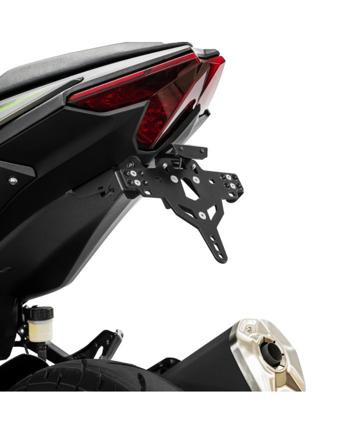 schwarz pulverbeschichtetder Kennzeichenhalter ist für jeden Kennzeichentyp geeignet (Breite 175 mm)es müssen keine Verkleidungsteile verändert werdenNeigungswinkel ist lückenlos verstellbarBlinkerhalter sind in 3 Positionen verstellbarsehr gute Passform, sportliche Optikkeine Eintragung erforderlich beim TÜV, ABE freifür eine plane Auflage des Kennzeichens sind die Schraubköpfe zusätzlich versenkt