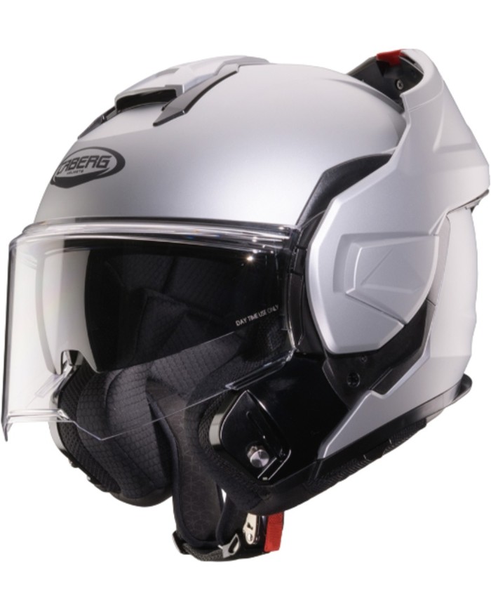 TRIP ist der erste FLIP-BACK-Helm von Caberg mit einer umkehrbaren Kinnpartie, die über ein einziges Drehgelenk bewegt wird.Im Vergleich zu herkömmlichen Modularhelmen bleibt die Kinnpartie beim Öffnen nicht oben auf der Helmschale liegen, sondern vollführt eine 180-Grad-Drehung bis zum hinteren Teil der Helmschale. Der Helm ist nach ECE 22.06 P und J zugelassen, das heisst sowohl als Integralhelm mit geschlossener Kinnpartie als auch als Jethelm mit geöffneter Kinnpartie, und erfüllt damit die Anforderungen von Motorradfahrern, die touren möchten, ohne auf Vielseitigkeit zu verzichten.