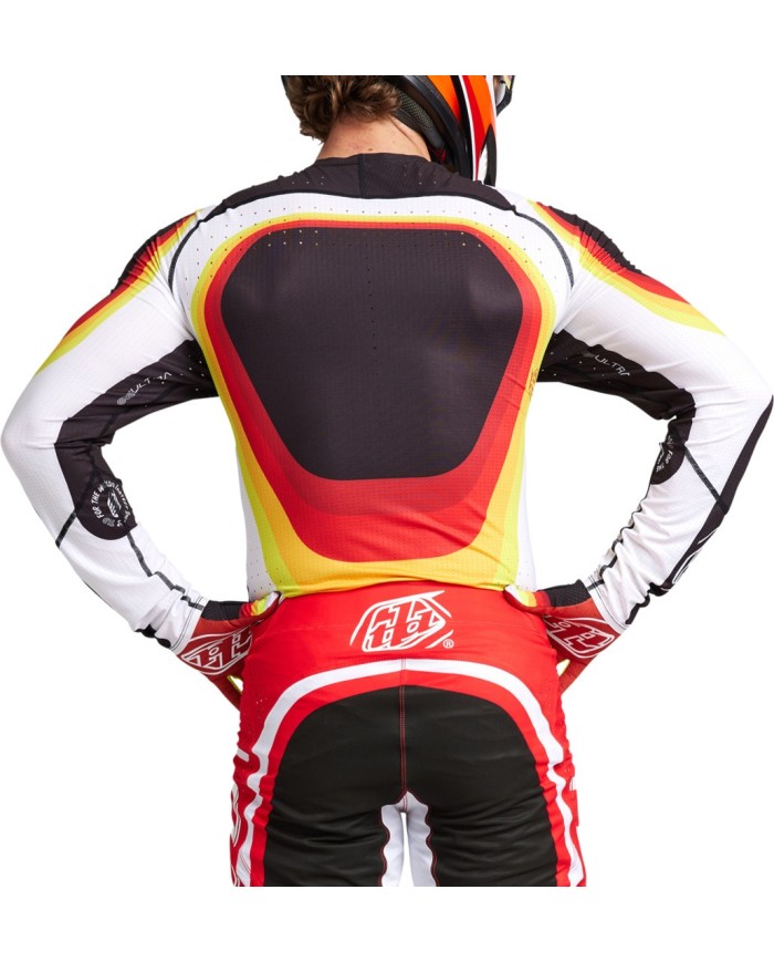 SE Ultra wurde für Geschwindigkeit und überlegene Leistung entwickelt und ist der Inbegriff von Factory. Mit dem Fokus auf Funktion und Passform besteht das Premium 4-Wege Troy Lee Designs Ultra Mesh-Material im Trikot und in der Hose aus laserperforierten Zonen für eine bessere Belüftung, wobei strategisch verschweisste Paneele eine präzise Passform bilden. Wenn Aussergewöhnliches der Massstab ist, ist SE Ultra die Lösung.|||? Präzise Passform\n|? Troy Lee Designs Ultra Mesh mit laserperforierten Löchern\n|? Bluesign® zertifizierte Stoffe\n|? Kritische Schweisskonstruktion\n|? Feuchtigkeitsableitende und schnelltrocknende Oberflächen\n|? Silikonbedruckter Saum, um das Trikot an Ort und Stelle zu halten