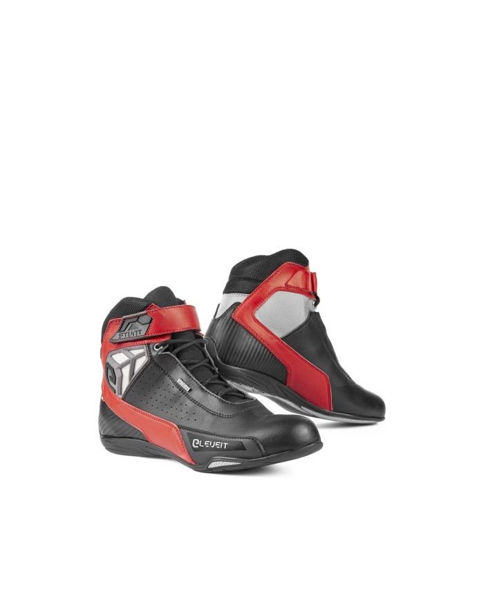 Wasserfeste Motorradstiefel von Eleveit Stunt WP ist ein extrem leichter und flexibler Motorradstiefel aus Mikrofaser mit einem Belüftungsnetz an der Innenseite. Integriert mit der E-Dry-Membrane von Eleveit, die die Schuhe wasserdicht macht. Schutz über den Zehen und Knöcheln.- Schlankes Design.- Belüftung.- Gummi-Mischsohle.- Schnürung + Klettverschluss.