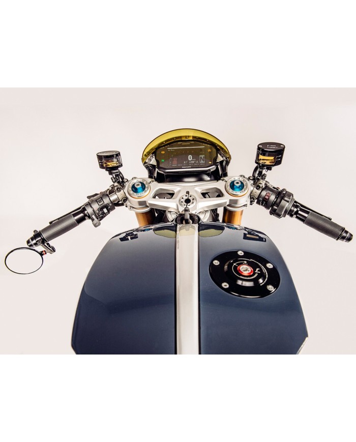 Dieser Bremsflüssigkeitsbehälter von Rizoma setzt neue Massstäbe. Er ist zur Gänze aus dem Vollen bearbeitet und bietet durch besondere Oberflächenbehandlung neben einem breit gefächerten Farbspektrum ebenfalls hervorragende Qualität und Lebensdauer.