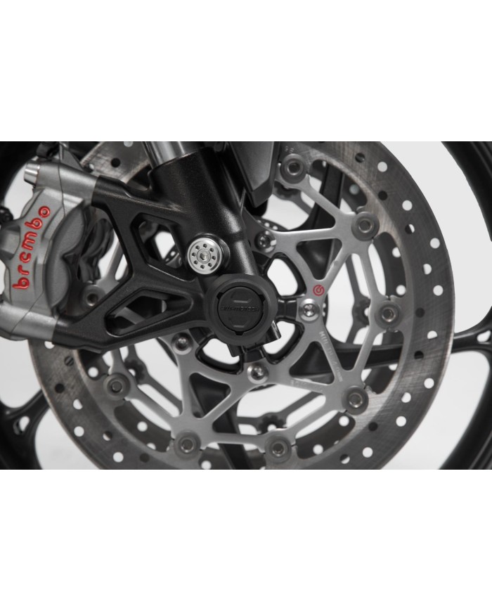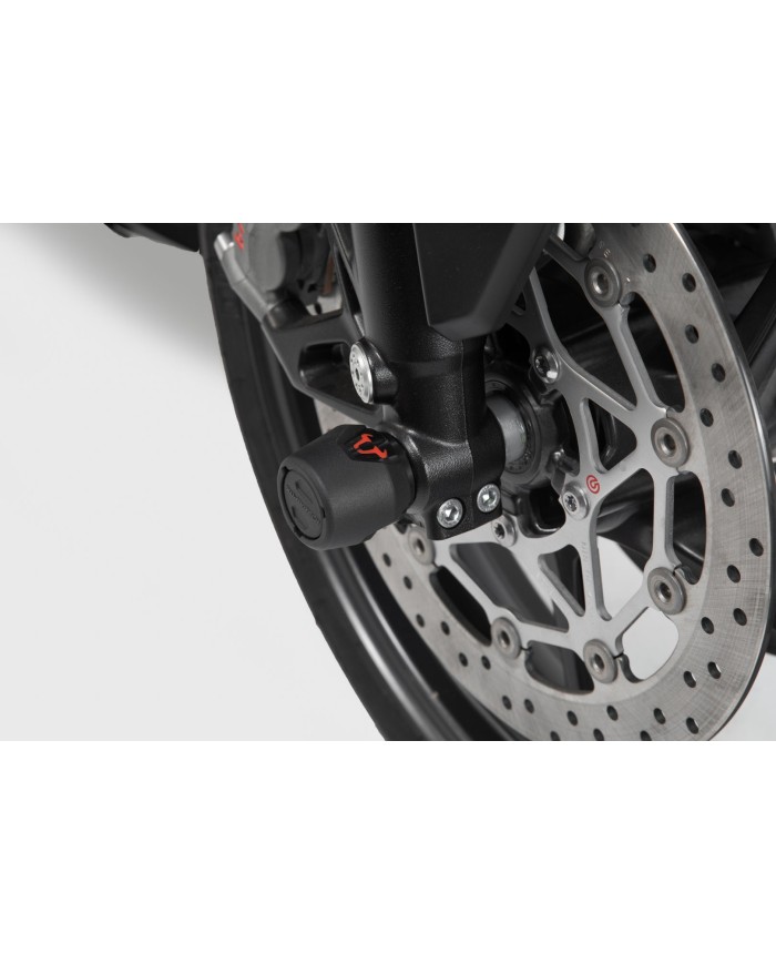 Die Sturzpads für die Vorderachse aus abriebfestem Kunststoff schützen die Gabel vor Beschädigungen im Falle eines Sturzes. Mit einem Glasfaseranteil von 30% ist der Kern der Sturzpads widerstandfähig beim Aufprall. Die glatte Oberfläche sorgt zudem für hervorragende Gleiteigenschaften. Das polierte, rote Bullen-Logo sorgt für ein optisches Highlight an deinem Motorrad.
