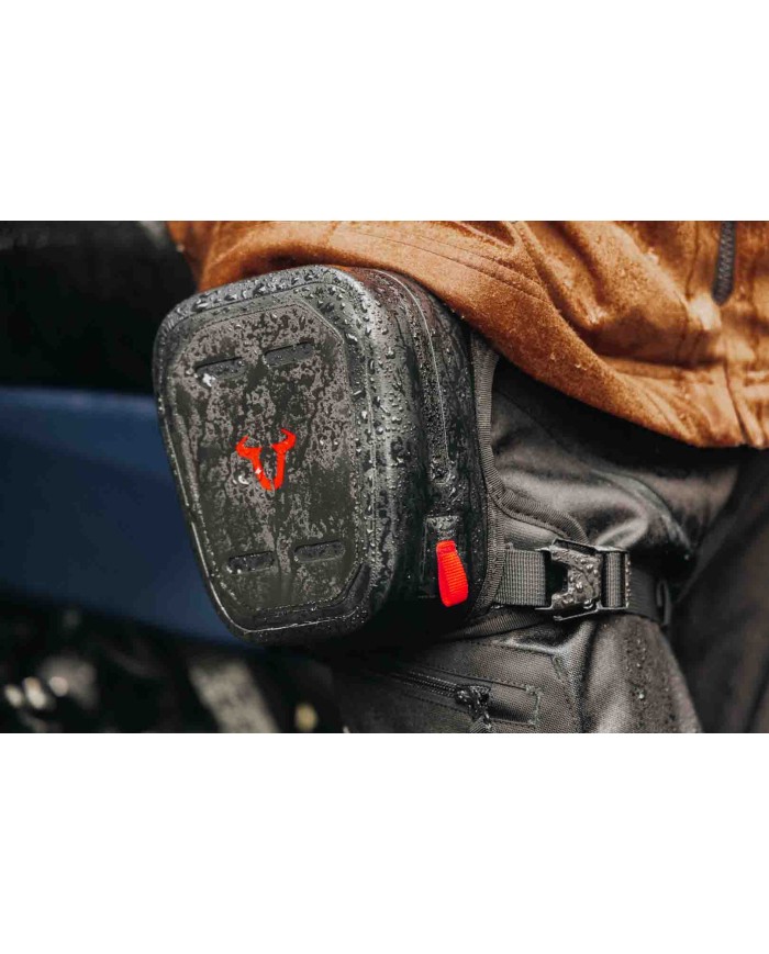 Du bist auf der Suche nach einer eleganten Lösung für einen alternativen und angenehmen Gepäcktransport am Bein? Dann ist diese wasserdichte Variante der Leg Bag der bequeme Begleiter deiner Wahl. Denn damit hast du wichtige Dinge während der Fahrt schnell griffbereit. Du hast keine Möglichkeit, an deinem Bike einen Tankrucksack anzubringen? Hier schafft die Leg Bag WP Abhilfe. Besonders populär bei Fahrern von Supersportlern oder Retro-Bikes, eignet dich diese Weiterentwicklung der funktionalen Beintasche für kleine Spritztouren ebenso wie für lange Strecken.