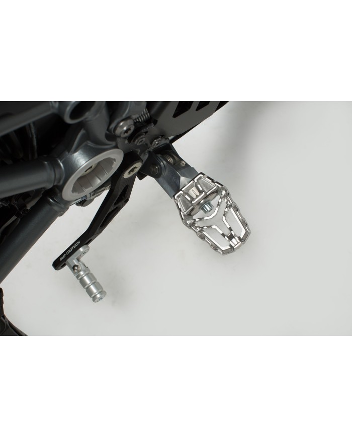 Die Original-FuÃraste bietet keine bequeme Position? Dann ist die neue EVO FuÃraste von SW-MOTECH die ideale Lösung. Ein ausgeklügeltes System, bestehend aus drehbaren Elementen mit fest ineinandergreifenden Zähnen, erlaubt 36 Variationsmöglichkeiten. Die Position der FuÃraste lässt sich nach unten, vorne und hinten und in der Neigung auf die individuellen Bedürfnisse einstellen. Die Allgemeine Betriebserlaubnis (ABE) gilt nur in Verbindung mit dem modellspezifischen Anbaugelenk.