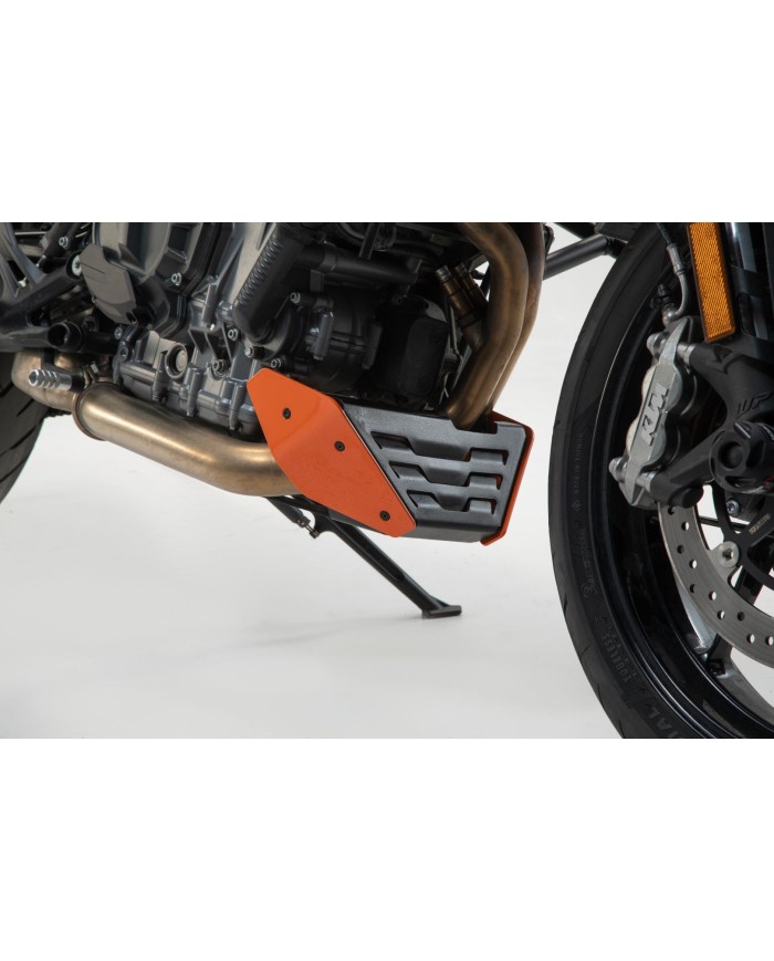 Zusätzlicher Schutz des Motors vor Steinschlag und bei Bodenkontakt: Der aus hochwertiger Aluminium-Legierung gefertigte Motorschutz zeigt abseits der Strasse sein ganzes Können, gibt aber auch Strassenmotorrädern ein Mehr an Sicherheit und einen individuellen Look. Hochmoderne Fertigungsverfahren geben den modellspezifisch gefertigten Schutzteilen eine sichere Passform. Die Befestigung an Rahmen-Montagepunkten verleiht zusätzliche Stabilität und erlaubt eine einfache Montage.