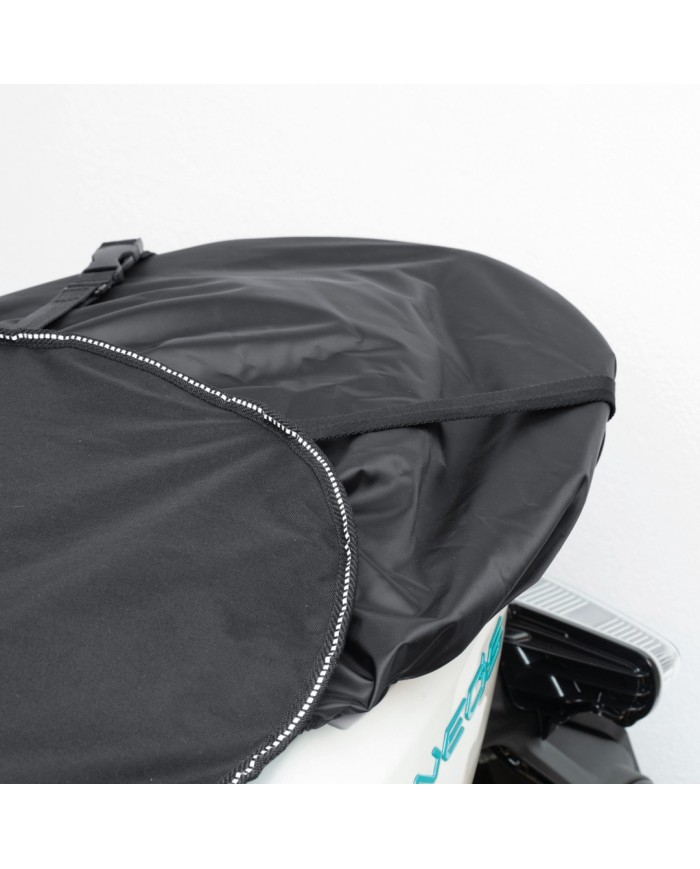 Modell nicht ausgestattet mit dem seitlichen aufblasbaren Flatterschutz-System (S.G.A.S.), empfohlen für Elektroroller oder den städtischen Gebrauch bei etwa 50 km/h. Für häufige Verwendung bei hohen Geschwindigkeiten wird alternativ der TERMOSCUD® mit dem S.G.A.S.-System empfohlen, die zu tragenden Beinabdeckungen PANTA-FAST, TAKEAWAY, die gepolsterte Hose PANTA DILUVIO und PANTAWARM.