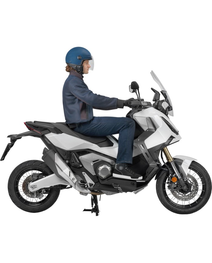 - Im Sommer muss er nicht vom Moped entfernt werden: es genügt, den für den Winter bestimmten Teil abzulösen und den festen, an der Karosserie angebrachten Spoiler montiert zu lassen, woraus sich in Notfällen ein Regenschutz und eine praktische Sitzabdeckung herausziehen lassen.