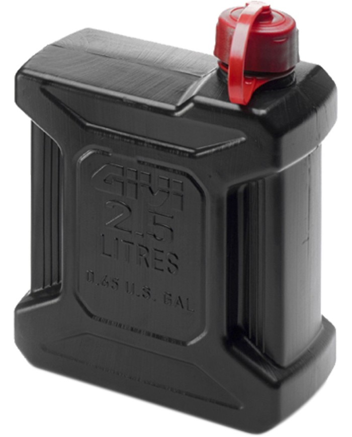 Tank mit 2,5 Liter Volumen, zur Beförderung von Benzin, Wasser oder Öl zugelassen.
