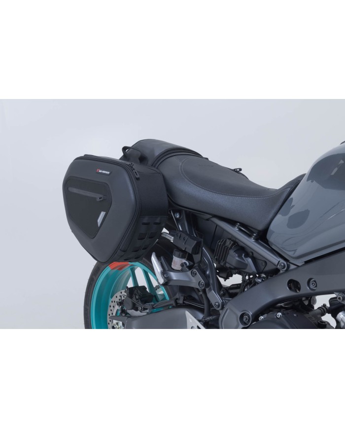 Die PRO BLAZE Satteltaschen mit abnehmbaren Abstandsbügeln bestechen durch sportliche Optik, geringes Gewicht und ein cleveres Befestigungssystem. SW-MOTECH fertigt die Taschen aus robustem und besonders UV beständigem 1680D Ballistic Nylon. In Verbindung mit Seitenwänden aus formstabilem EVA-Material wird das Gepäck vor Spritzwasser und Staub geschützt. Gezielt entwickelt für sportliche Motorräder beeinträchtigen die Satteltaschen die Fahreigenschaften nur minimal. Wer ohne Gepäck unterwegs ist, kann die Abstandsbügel mit einem Handgriff abnehmen und an der Maschine verbleiben nur unauffällige Halterungen.