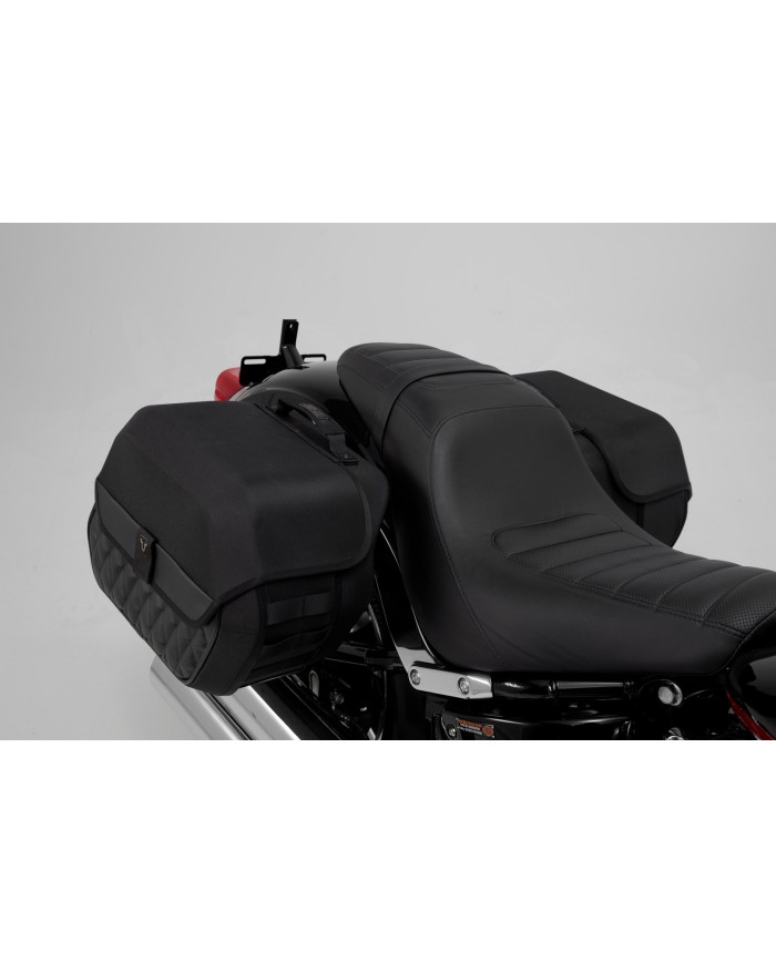 Es besteht aus einer LH1 auf der rechten Seite und einer LH1 Seitentasche auf der linken Seite inklusive der passenden Träger für das Motorrad. Die einheitliche Grösse der Taschen sorgt für ein symmetrisches Erscheinungsbild am Bike und ermöglicht zudem zusätzliche individuelle Auspuffkonfigurationen.