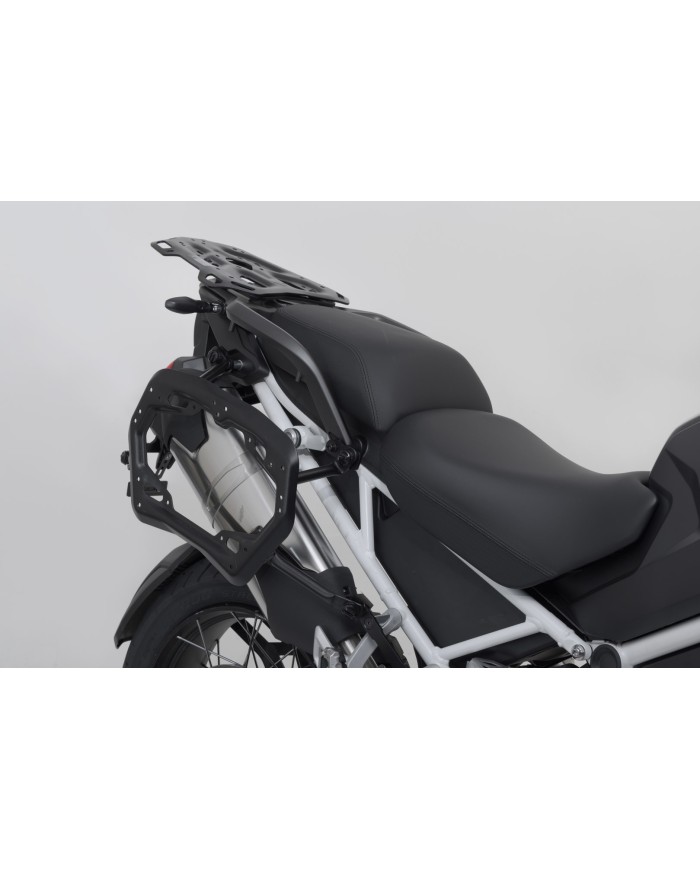 - Für die Montage von Seitenkoffern am PRO Seitenträger sind spezifische Adapterkits notwendig. Diese sind separat erhältlich für die SW-MOTECH Koffer der Serien TRAX ADV, TRAX ION und AERO ABS sowie SysBag WP L mit Adapterplatte. Auch für Koffersysteme anderer Hersteller sind Adapterkits separat erhältlich.