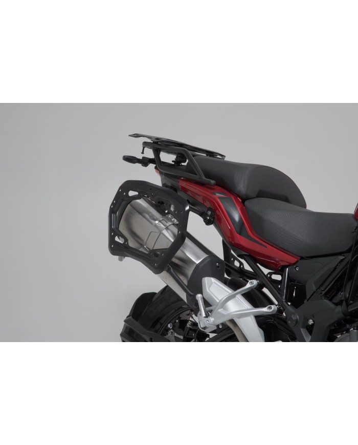 - Für die Montage von Seitenkoffern am PRO Seitenträger sind spezifische Adapterkits notwendig. Diese sind separat erhältlich für die SW-MOTECH Koffer der Serien TRAX ADV, TRAX ION und AERO ABS sowie SysBag WP L mit Adapterplatte. Auch für Koffersysteme anderer Hersteller sind Adapterkits separat erhältlich.