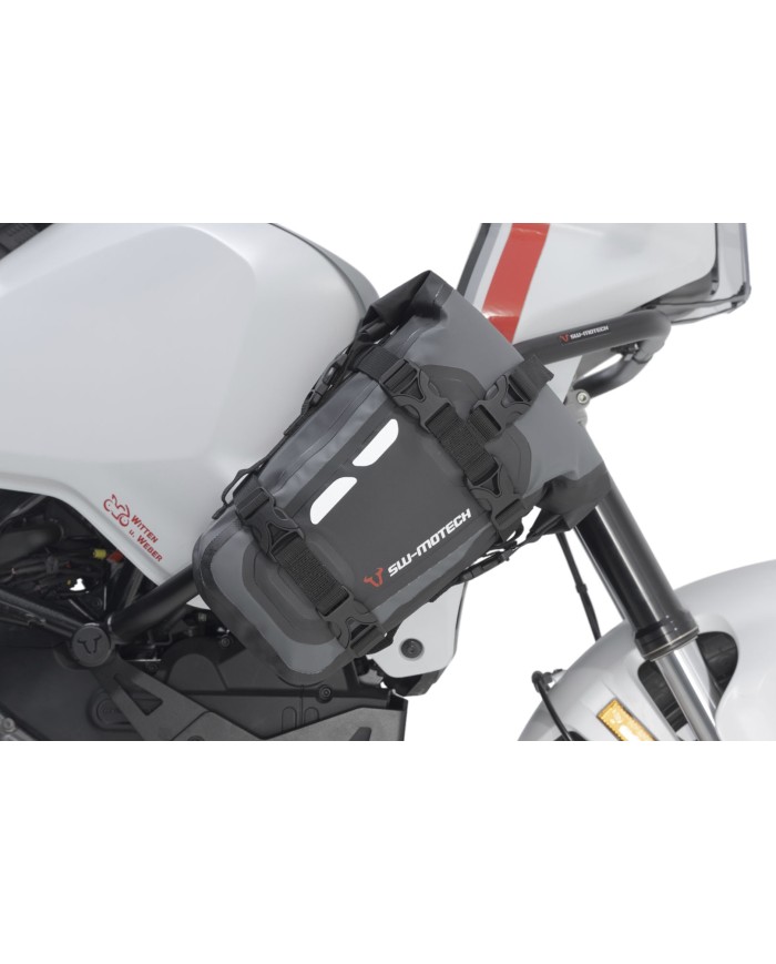 Das kleine Drybag 80 ist der ultimative Begleiter für dein Motorradabenteuer. Es lässt sich am Sturzbügel, auf dem Soziussitz oder auf dem Gepäckträger befestigen und erfüllt dort zuverlässig seinen Zweck als praktischer Stauraum für alle Einsatzgebiete. Alternativ kannst du das Drybag 80 auch auf grösseren Modellen (ab Drybag 350 aufwärts) verzurren oder einfach als Schultertasche benutzen.