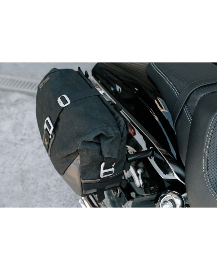 • Als Alternative zum Metall-Träger, etwa für Umbauten und Custom Bikes, bietet sich der universell einsatzbare Legend Gear SLS Satteltaschen-Halter an.
