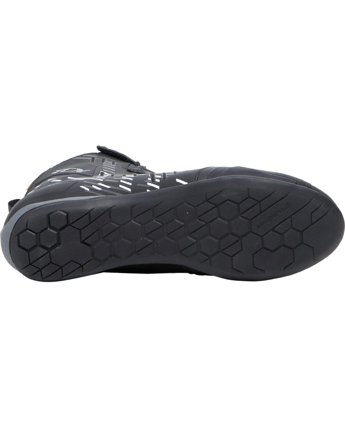Das Obermaterial aus Mikrofaser garantiert eine hohe Sensibilität beim Fahren und eine präzise Passform. R04D WP verfügt über Schnürverschluss, Gamasche und einen verstellbaren Klettverschluss im Bereich des Schuhkragens. Für maximale Sicherheit sorgen der Riemenschutz aus Bycast-Leder und das reflektierende Element auf der Rückseite.