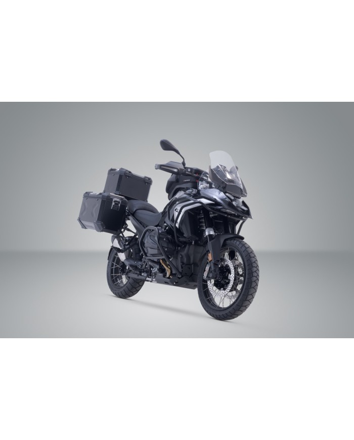 Dieses Set ist das Rund-um-Sorglos-Paket für jede Tour. Die wasser- und staubdichten TRAX ADV Premium-Alukoffer, zwei Seitenkoffer und ein Topcase, bieten deinem Gepäck besten Schutz. Die modellspezifische Entwicklung des abnehmbaren PRO Seitenträgers und des ADVENTURE-RACK Gepäckträgers garantieren beste Passform und den sicheren Halt der Alukoffer.