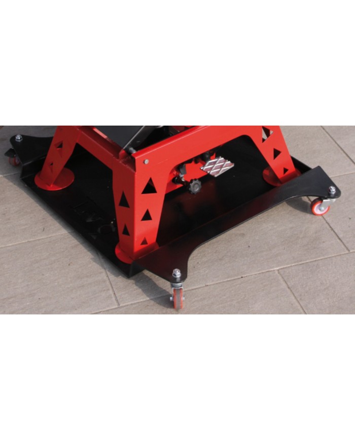 Die Rangierhilfe wird mit einer Antirutschauflage geliefert. Die Verlängerung für den Seitenständer ist als Zubehör erhältlich.