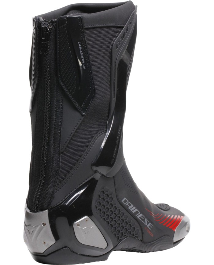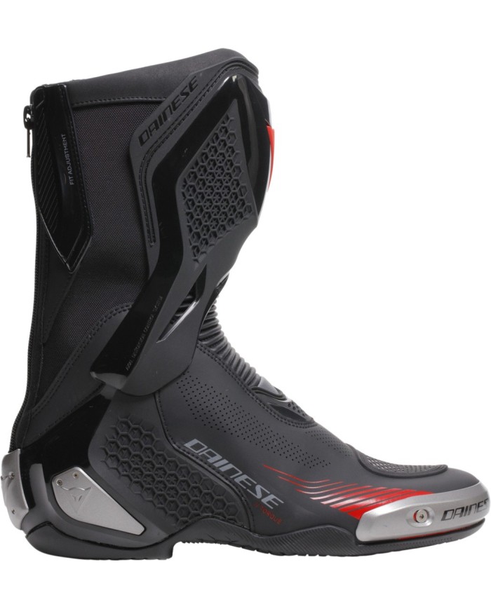 Dieser Rennstiefel aus Mikrofaser und D-Stone?-Gewebe mit D-Axial-System aus hoch-haftendem TPU und perforiertem Schaft für maximale Belüftung ist eine Weiterentwicklung des Dainese-Spitzenmodells Axial 2 und garantiert optimalen Komfort und hohe Schutzstandards bei gleichzeitig sportlichem und attraktivem Design.