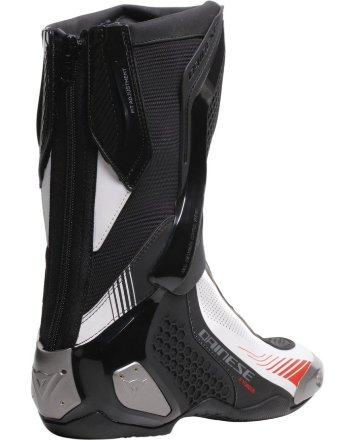 Dieser Rennstiefel aus Mikrofaser und D-Stone?-Gewebe mit D-Axial-System aus hoch-haftendem TPU und perforiertem Schaft für maximale Belüftung ist eine Weiterentwicklung des Dainese-Spitzenmodells Axial 2 und garantiert optimalen Komfort und hohe Schutzstandards bei gleichzeitig sportlichem und attraktivem Design.
