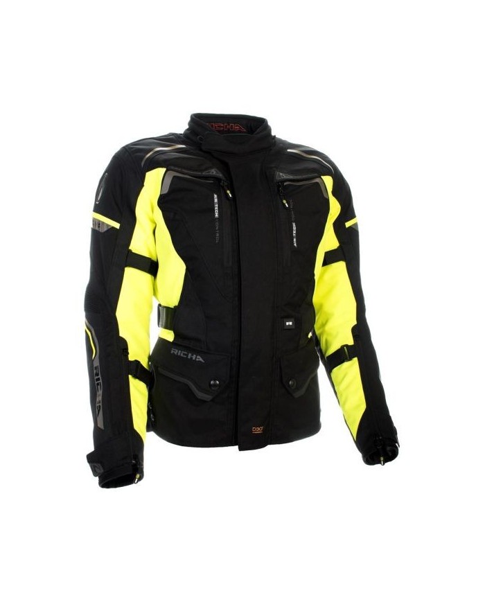 Der Nachfolger der erfolgreichen Infinity ist hier, der Richa Infinity 2. Was die Inifinity 2 so gut macht, ist, dass du diese 3-lagige Motorradjacke über das ganze Jahr tragen kannst. Sie hat die richtigen Sicherheitsaspekte und fällt in das Mittelklassesegment.FahrertypDie Infinity 2 ist eine hochwertige Textiljacke. Sie eignet sich perfekt für Touren- und Abenteuerfahrerinnen. Welche sich von keinem Wetter aufhalten lassen. Durch die bequeme Passform ist die Jacke auch auf längeren Fahrten sehr angenehm.Innen- und AussenmaterialDank einer stabilen Außenschicht aus hochdichtem Polyamid garantiert die Richa Infinity 2 die richtige Abriebfestigkeit und Haltbarkeit. Im Inneren der Jacke befinden sich noch zwei weitere Schichten. Zum einen eine wasser- und winddichte Membrane und noch ein abnehmbares Thermo- Innenfutter. AusstattungWie wir es von Richa gewohnt sind, ist diese Motorradjacke mit D3o-Protektoren an Schultern, Ellbogen und Rücken ausgestattet. D3o hat die Eigenschaft, nur bei einem Aufprall zu härten, bei dem sie sich reibungslos abnutzen. Diese entsprechen alle der Norm CE Level 1 und bestehen aus einem flexiblen Material, das auch den Tragekomfort verbessert. Die Infinity 2 bietet ausserdem eine Vielzahl an Speichermöglichkeiten vorne und hinten. Wenn du die Inneren Schichten aus der Jacke nimmst, kannst du sie im großen Fach auf der Rückseite aufbewahren. Die Motorradjacke hat eine enge Passform und ist mit einem Klettverschluss um die Taille verstellbar. Als Speicher- und Einstellmöglichkeiten befinden sich zwei Aussen- und Innentaschen an der Jacke. Auch eine Handytasche befindet sich im Inneren der Infinity 2. Mit Einstellgurten an den Armen und der Taille lässt sich die Jacke ideal an dich anpassen. Reflektierende Details machen dich bei Dunkelheit besonders sichtbar.OptionenAm unteren Teil der Jacke befindet sich ein Verbindungsreissverschluss, mit dem du ganz einfach Hose und Jacke verbinden kannst. Der Reissverschluss hat die Aufgabe im Falle eines Sturzes die beiden Teile zusammen zu halten. Um dir einen noch besseren Schutz zu gewährleisten, kannst du die Protektoren noch auf Level 2 aufrüsten.LieferumfangMotorradjacke inkl. integrierten, herausnehmbaren CE-Level 1 Protektoren an Rücken, Schultern und Ellbogen